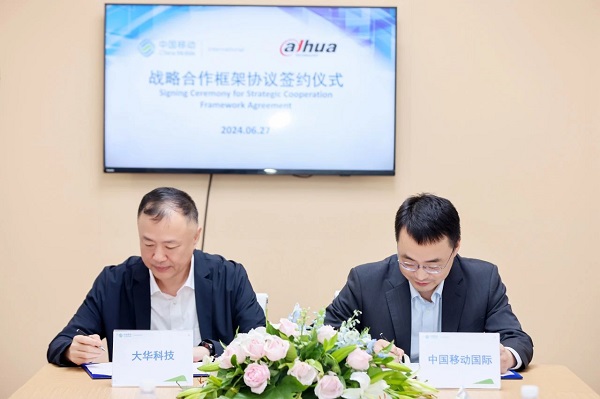 近日,大华股份与中国移动国际有限公司(以下简称“中移国际”)签署战略合作协议。中移国际董事长兼行政总裁王华、董事兼行政副总裁林二维,大华股份董事张晓明等双方领导出席签约仪式。