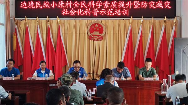 9月24日,德宏州气象局、州应急管理局、州防震减灾局、芒市气象局联合到芒海镇政府开展边境民族小康村全民科学素质提升暨防灾减灾社会化科普示范培训活动,旨在提升全民科学素养,助力乡村振兴及科技减灾。芒海镇应急管理责任人、气象信息员、村民代表70余人参加培训活动。
