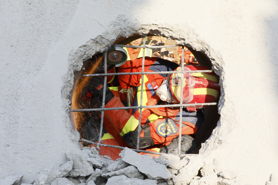 此次测评立足“实景、实装、实战”原则,采取实战检测和示范教学相结合的方式,重点围绕评估、搜索、营救、院前急救等方面进行测评,开展了人员和装备运送、重物顶撑操作、狭小空间横向破拆、向下安全破拆、院前急救等地震救援专业科目。