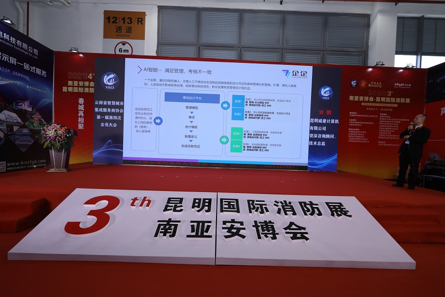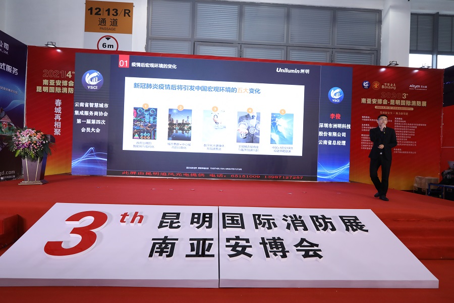 五家会员单位在大会上进行了价值分享。捷顺智能控制系统工程有限公司的王文宇先生,围绕城市静态交通、出行,做了《智能硬件+IoT+区块链 ——定义智慧城市停车4.0》的主题分享,提出城市智慧停车整体解决方案,通过集中化管控、智能化运营和统一服务,持续赋能产业发展,助力企业优化管理、强化运营、拓展增值,与产业客户、生态伙伴共享产业互联网新红利。浙江大华技术股份有限公司的罗会琼女士,围绕以AI新技术推动行业发展,做了《智能映射,加速驱动AI数字化转型落地》的主题分享,提出以业务为牵引、以数据为基础的一站式数据智能开发和运营平台,构建全域数据治理体系,激发数据价值,赋能业务创新。洲明云南公司的李俊先生围绕后疫情时代新基建在云南和昆明的发展,做了《新基建下洲明在智慧城市中的应用》的主题分享,对洲明在智慧城市建设中的应用场景进行了机会点的深入剖析。昆明威豪计算机有限公司的刘鹏先生,围绕协会企业会员提升经营管理能力、规避经营风险,做了《基于项目核算的集成服务型企业财税难题解决之道》的主题分享,针对现在服务型企业,从项目费用支出、项目核算、项目多维度实时看板等方面,提出借助最新信息智能化手段解决财税问题。深圳市数存科技有限公司的徐胜旺先生,围绕已上升为国家战略的安全防范领域,做了《以变化应对变化下的新安全市场》的主题分享, 提出了支撑业务不间断运行的是需要加强持续服务的能力,持续服务能力包括数据安全能力、网络安全能力和业务安全能力,其中数据安全能力打造尤其显现的重要。
