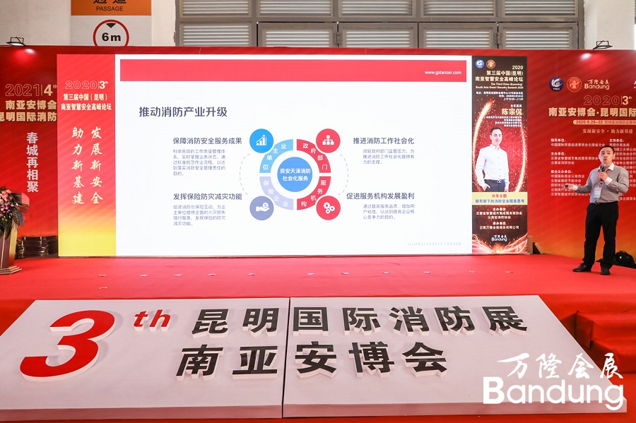 云南克罗克代消防工程公司智慧消防荣誉顾问,辰安天泽智联技术有限公司西部大区销售总监陈宗侃在第三届中国(昆明)南亚智慧安全高峰论坛上做了“新形势下的消防安全服务思考”的主题分享。
