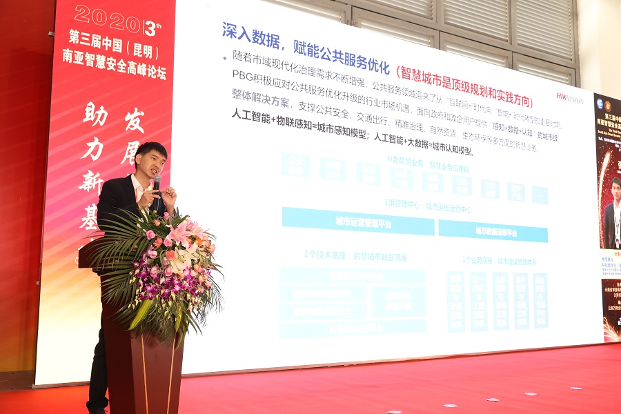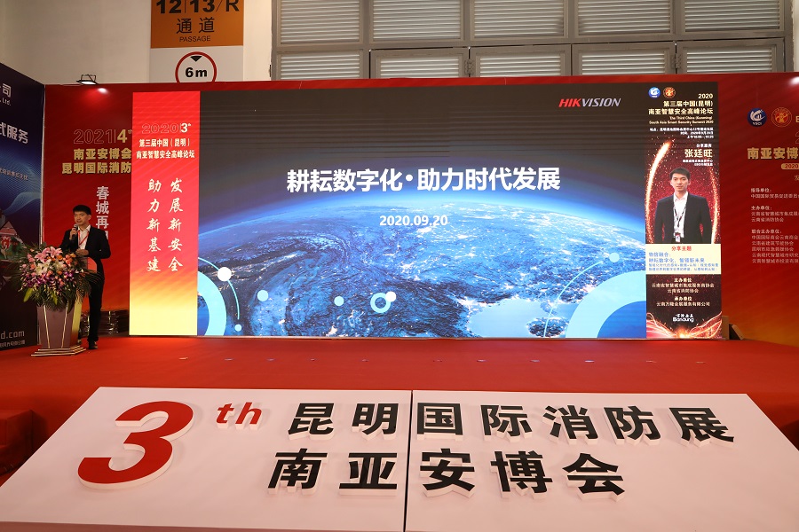 2020年9月20日上午10:00,在第三届中国(昆明)南亚安博会和第三届昆明国际消防展举办期间,由云南省智慧城市集成服务商协会、云南省消防协会联合主办,云南万隆会展服务有限公司承办的以“发展新安全 助力新基建”为主题的第三届中国(昆明)南亚智慧安全高峰论坛在昆明滇池国际会展中心隆重举办,杭州海康威视数字技术股份有限公司在本届论坛上做了“耕耘数字化,助力时代发展”的主题分享。