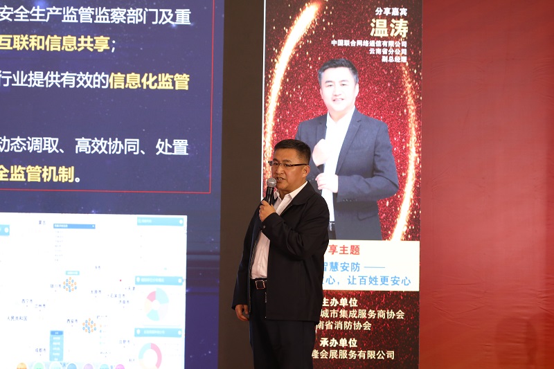 中国联通云南省分公司副总经理温涛做“5G+智慧安防—让政府更放心,让百姓更安心”主题分享。