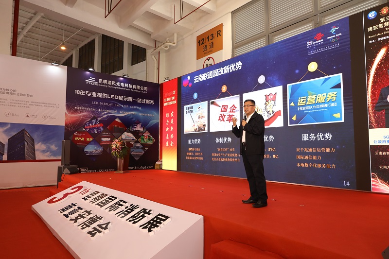 2020年9月20日上午10:00,在第三届中国(昆明)南亚安博会和第三届昆明国际消防展举办期间,由云南省智慧城市集成服务商协会、云南省消防协会联合主办,云南万隆会展服务有限公司承办的以“发展新安全 助力新基建”为主题的第三届中国(昆明)南亚智慧安全高峰论坛在昆明滇池国际会展中心隆重举办,中国联通云南省分公司副总经理温涛在本届论坛上做了“5G+智慧安防—让政府更放心,让百姓更安心”主题分享。