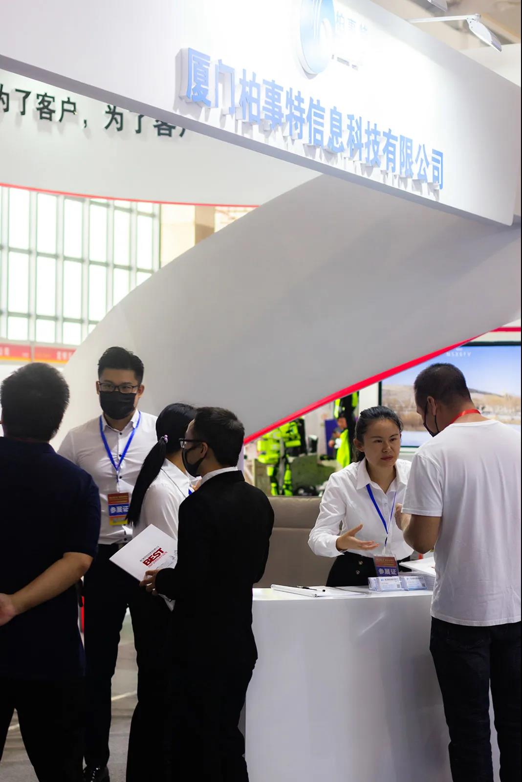柏事特展馆以蓝为主色调,现代、简约、开放的风格,赋予全新感官体验,通过视频图像、实物展示和现场解说等多种方式,展现了我们业内领先的智慧城市、智慧医疗、信息安全、工业互联等领域的产品和解决方案,众多领导、专家和同行纷纷驻足停留,并就智慧城市的技术应用进行咨询交流,探讨对接合作。