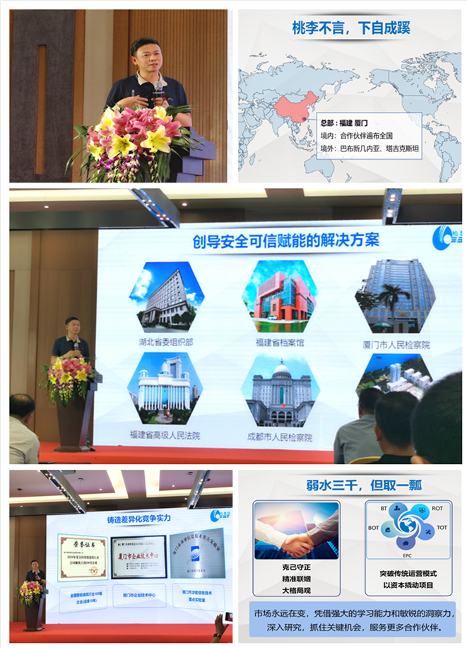 会上,柏事特总经理王旭昕应邀进行以“融变”为主题的演讲,分享企业创新的运营模式。柏事特多年来致力于在智慧领域运用数字经济实现资本运营,创导安全可信赋能的解决方案,持续为客户创造价值。企业在成长的过程中都会遇到很多机遇与挑战,唯有精准把控与甄别商机,不忘初心,坚持做正确的事情,才能汇集更多同行者,形成巨大正能量。柏事特秉承这种理念,经过多年的沉淀,在国内以及国外巴布新几内亚、塔吉克斯坦等都有众多合作伙伴。通过与各地伙伴的融合交流,突破传统的运营模式,以资本撬动项目,结合人才、技术、资质等实现项目价值的放大、叠加、倍增,产生全新的合作方式,实现与客户合作共赢。