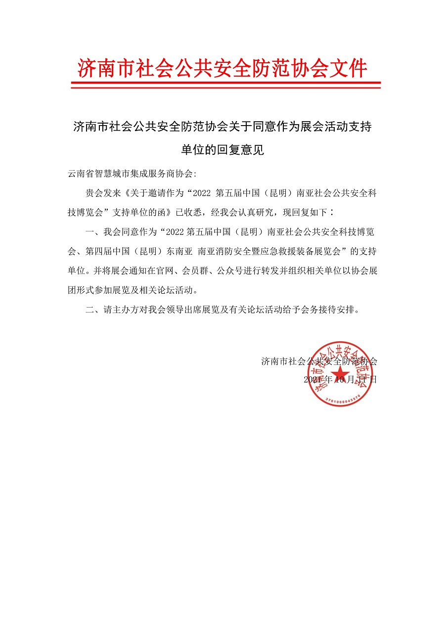 济南市社会公共安全防范协会关于同意作为展会活动支持单位的回复意见