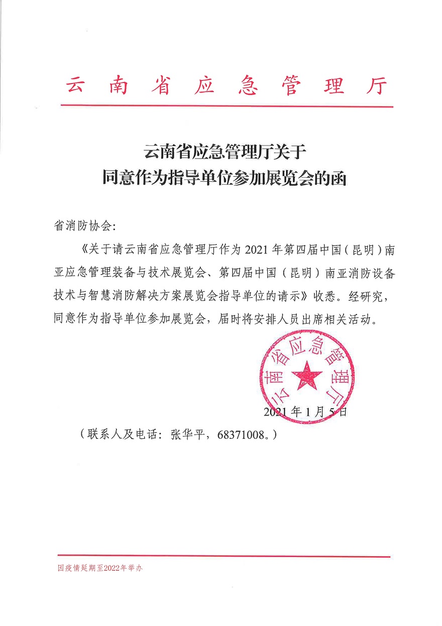 为筹办好第四届昆明消防应急展,云南省消防协会积极争取各级政府对展会的支持,经协会向省应急管理厅请示,云南省应急管理厅批复同意作为展会的指导单位并参加展览会。