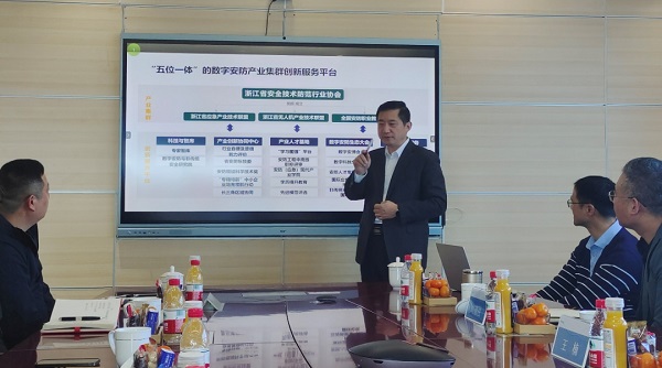 1月9日的研讨会议主要聚焦与浙安协的深入合作。在天诚智能工业园,中安协秘书长王楠和浙安协秘书长赵永华分别就中国安防大数据服务平台和浙江省“五位一体”的数字安防产业集群创新服务平台进行了详细介绍,在深入研讨环节,与会人员就安防企业数字化转型、安防人才培训、举办“一带一路”国际安全论坛以及能力评价等级互认等议题进行了讨论,确立战略合作伙伴的联动机制,达成了多项共识。